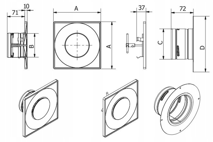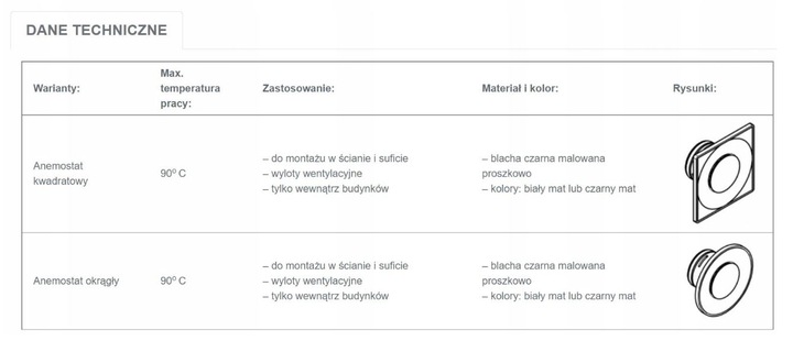 Anemostat DARCO VENTLAB fi 125 biały kwadrat ASKV metalowy DGP KOMINEK