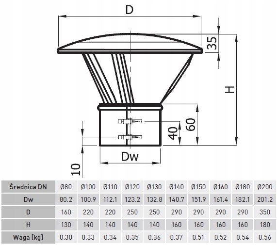 Daszek kwasoodporny 150 mm gr.0,6mm