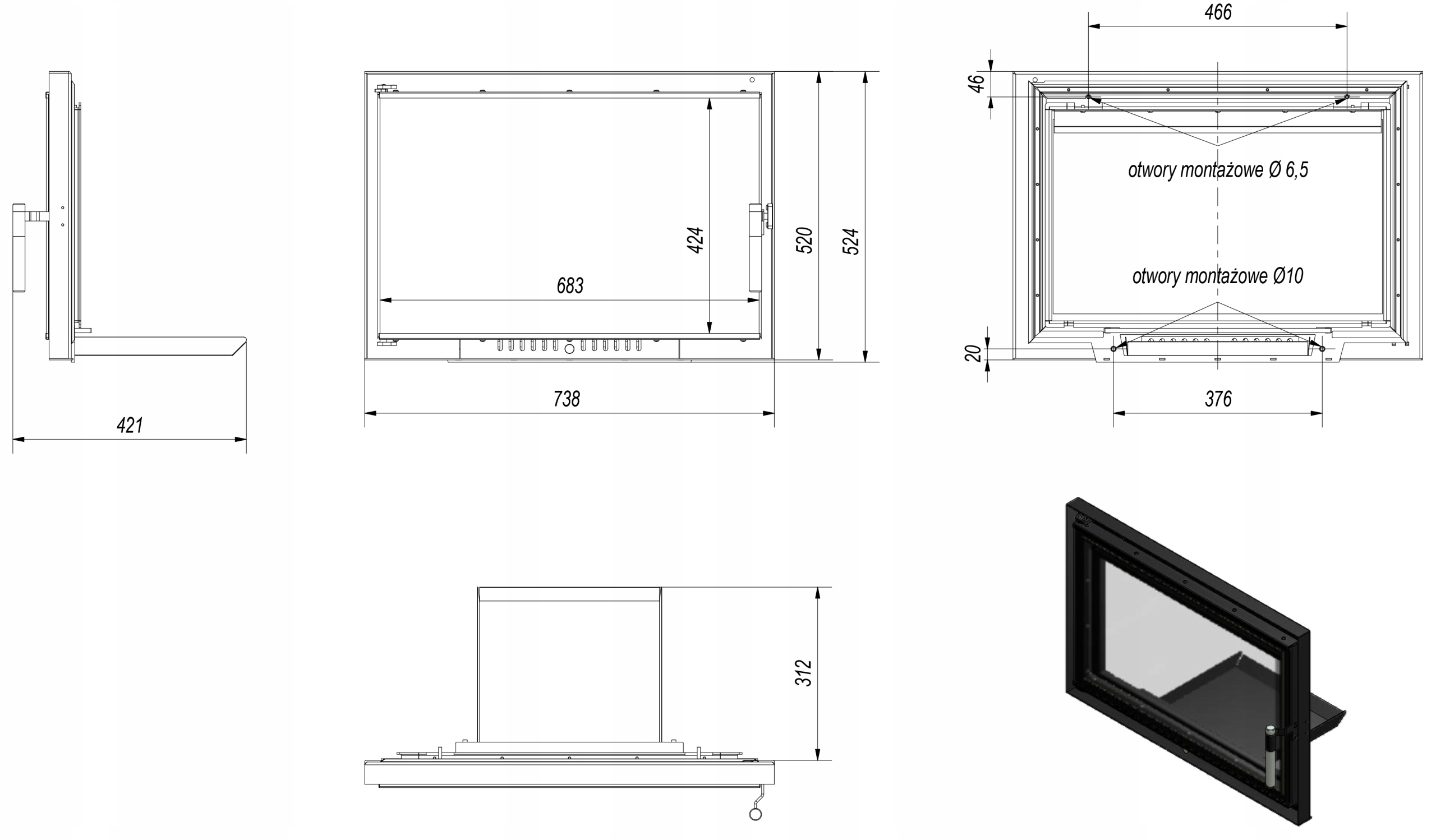 Drzwiczk kominkowe stalowe drzwi kominek OLIWIA DECO