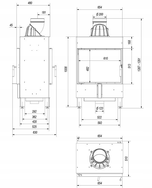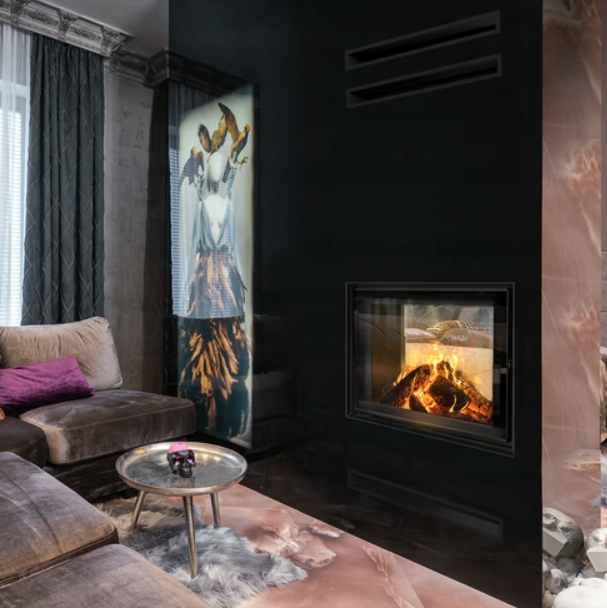 Kominek dwustronny powietrzny LUCY TUNEL 12 kW fi 200 czarne wyłożenie