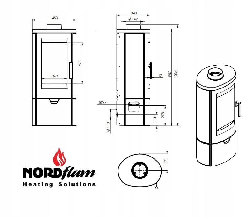 KOMINEK PIEC ŻELIWNY NORDFLAM PALERMO 7.8 kW KOZA