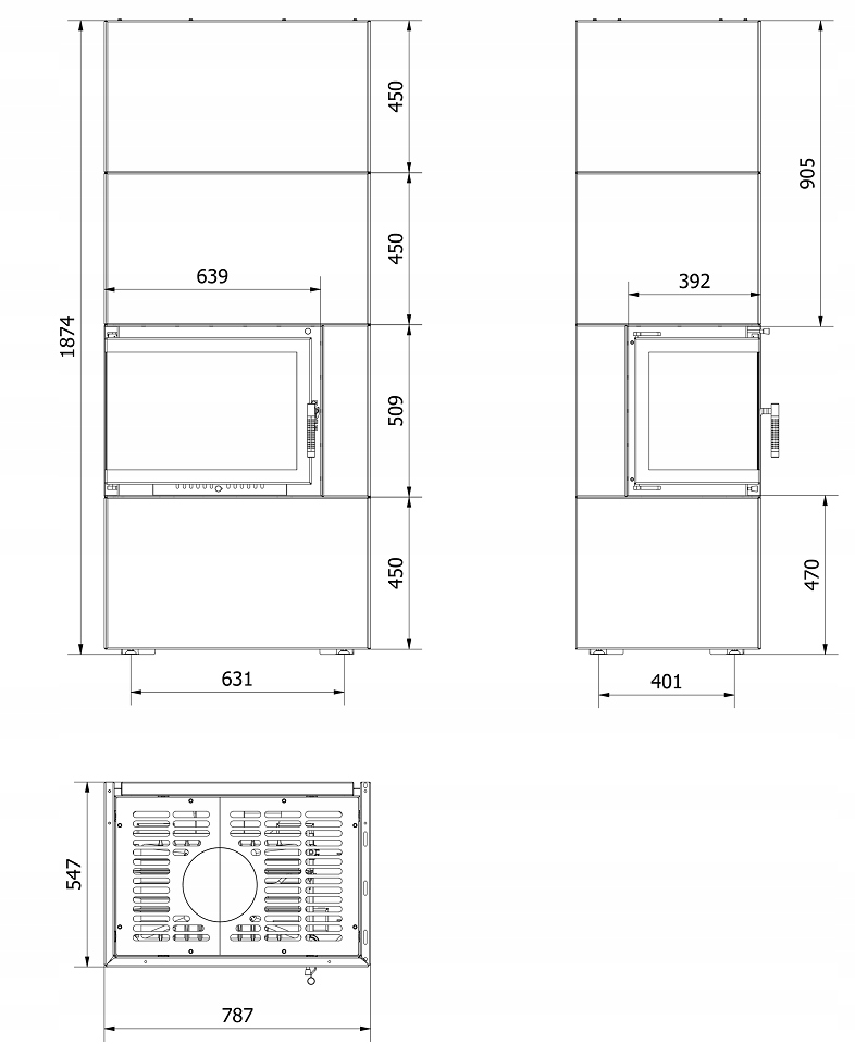 Kominek powietrzny Simple Box 8 kW fi 200 Black LEWY – GOTOWA ZABUDOWA