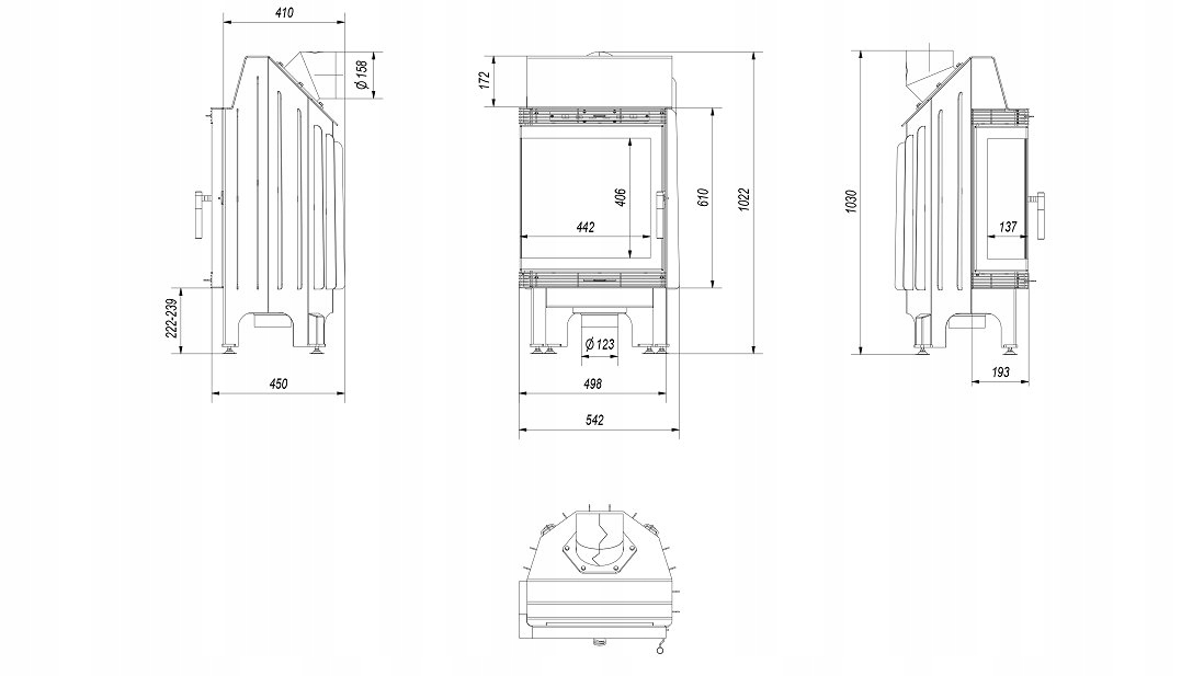 Kominek powietrzny stalowy KRATKI BLANKA lewy BS 8 kW Ø 160