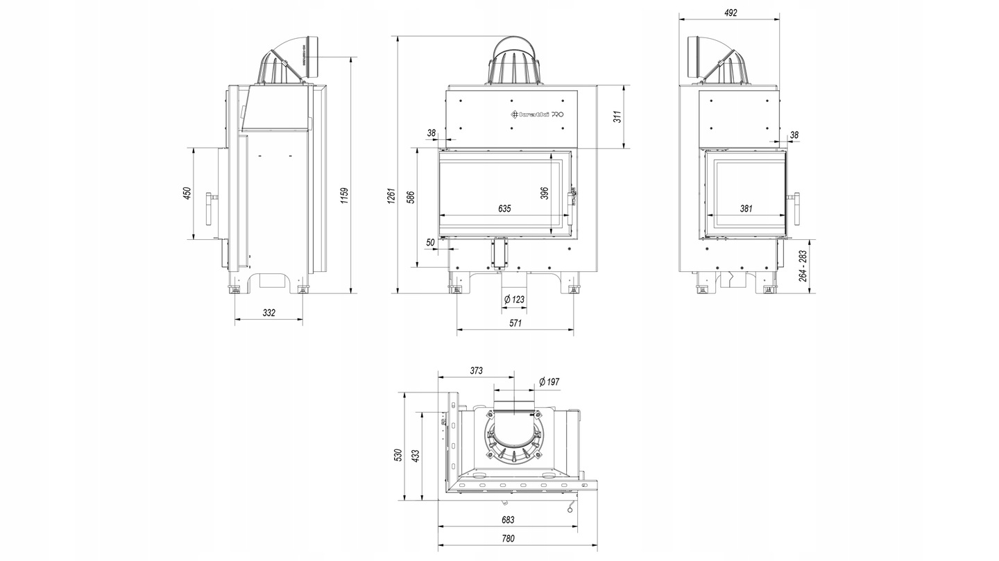 Kominek powietrzny stalowy KRATKI MBM lewy BS 10 kW Ø 200