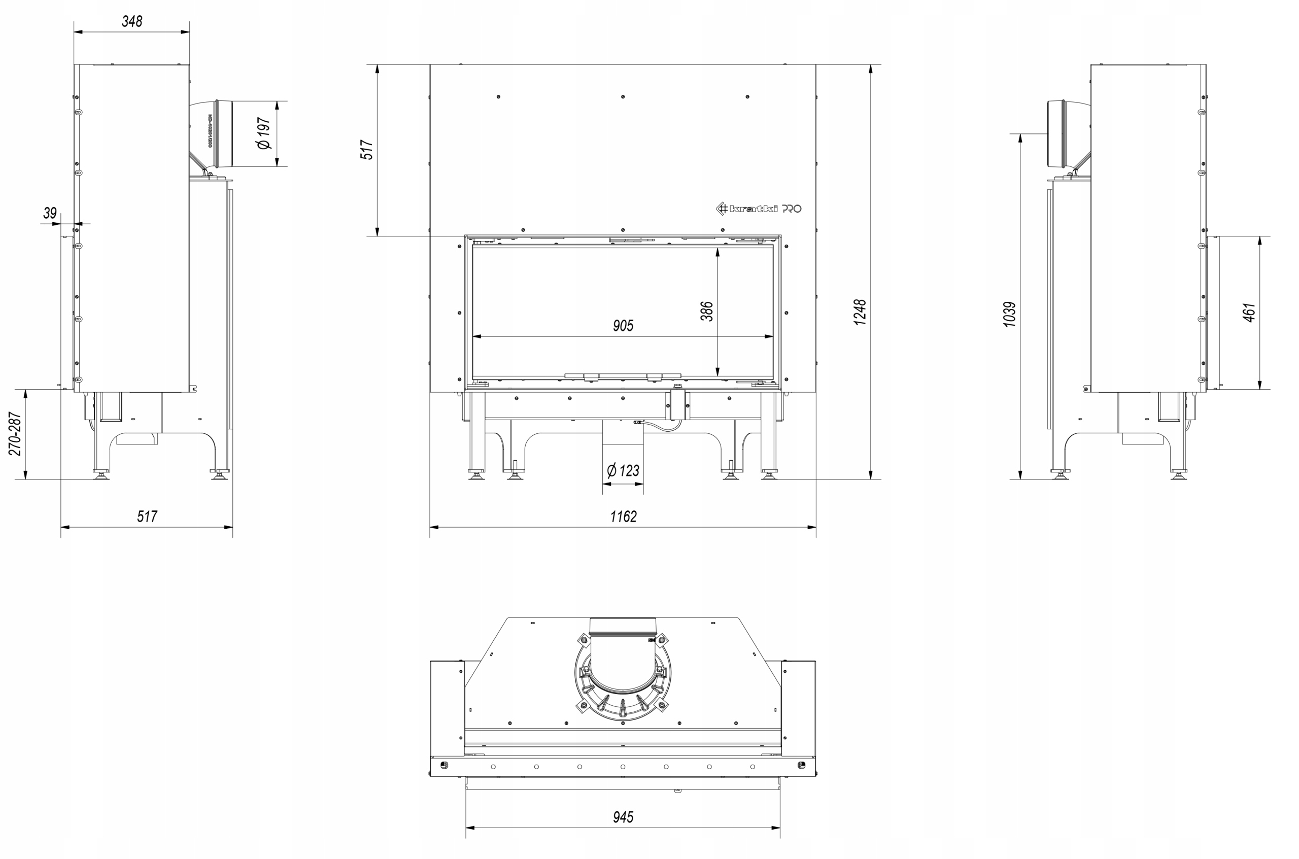 Kominek powietrzny stalowy KRATKI NADIA 14 kW Ø 200 Gilotyna