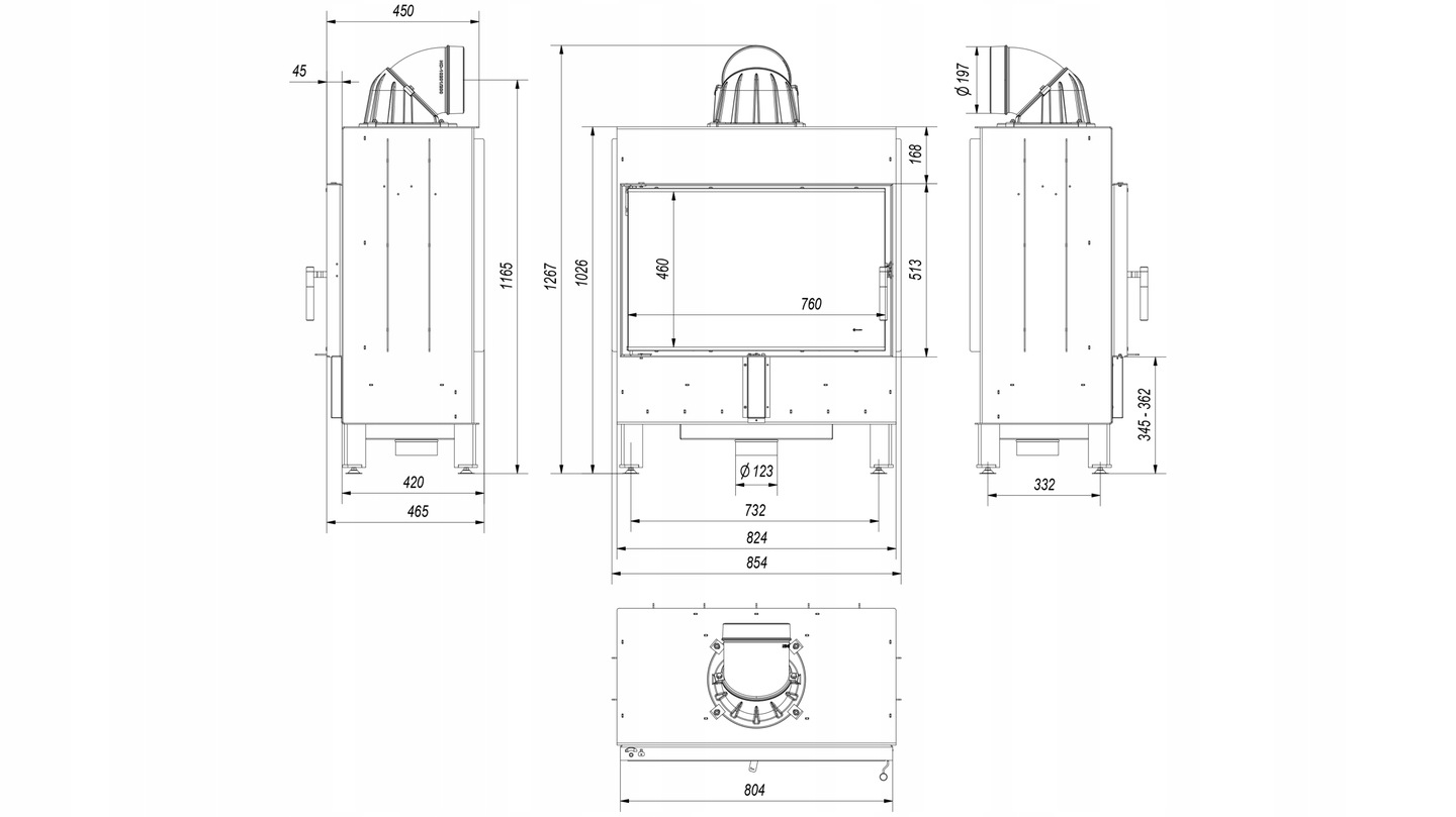 Kominek powietrzny stalowy LUCY 14 kW fi 200