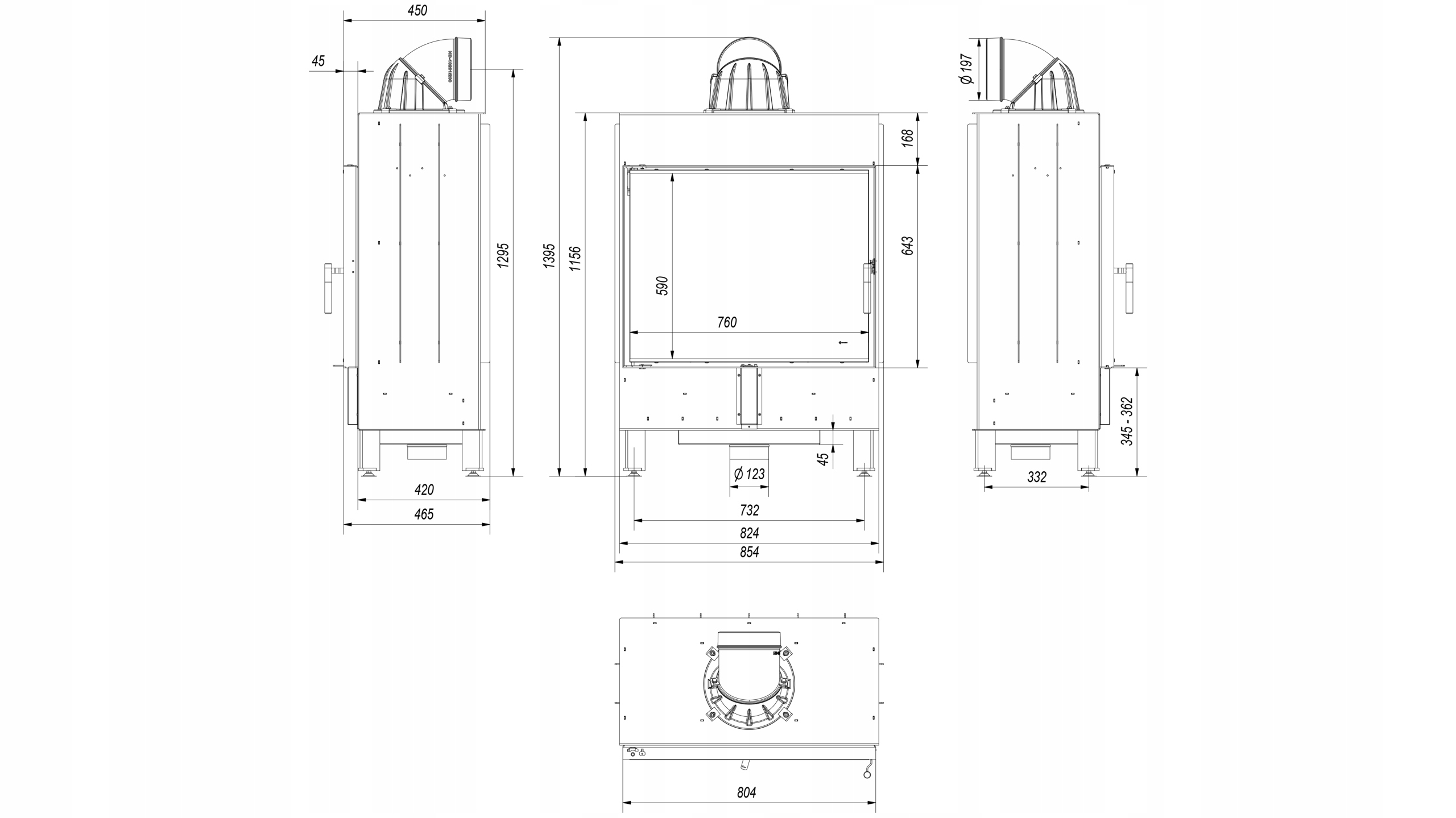 Kominek powietrzny stalowy LUCY 15 kW fi 200 KRATKI
