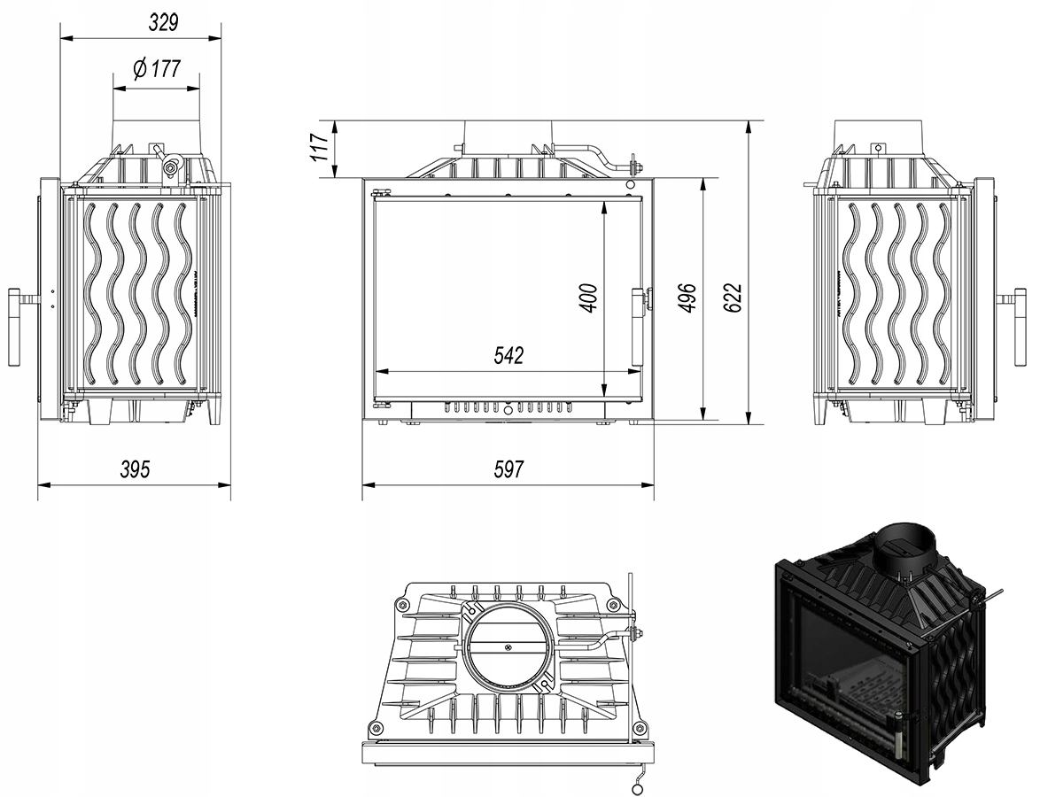Kominek powietrzny Wkład Żeliwny KRATKI ANTEK 10 kW fi 180 DECO EKOPROJEKT