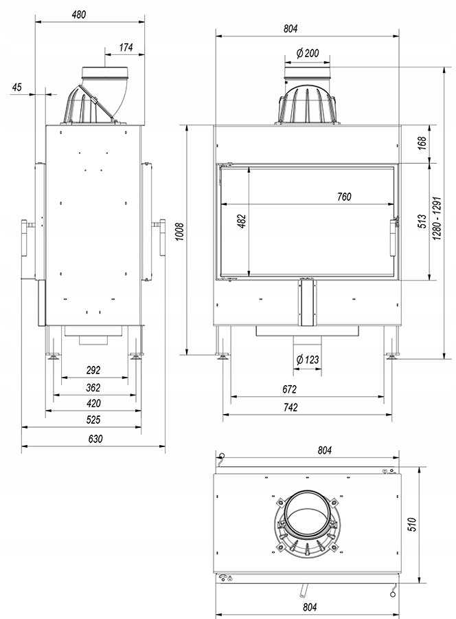 Kominek stalowy Kratki Lucy Tunel 14 kW czarny