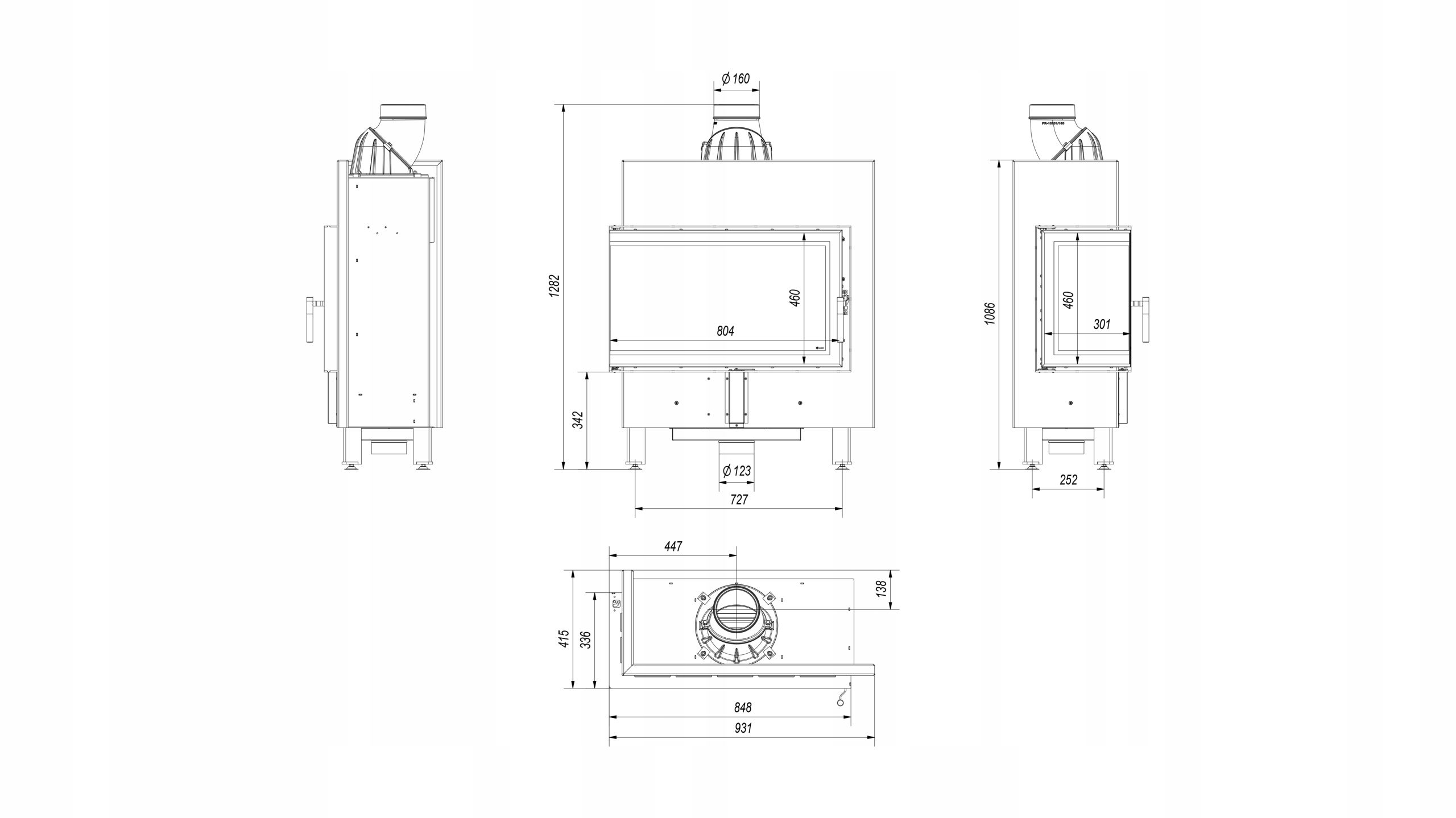Kominek stalowy LUCY SLIM lewy BS 10 kW Ø 160