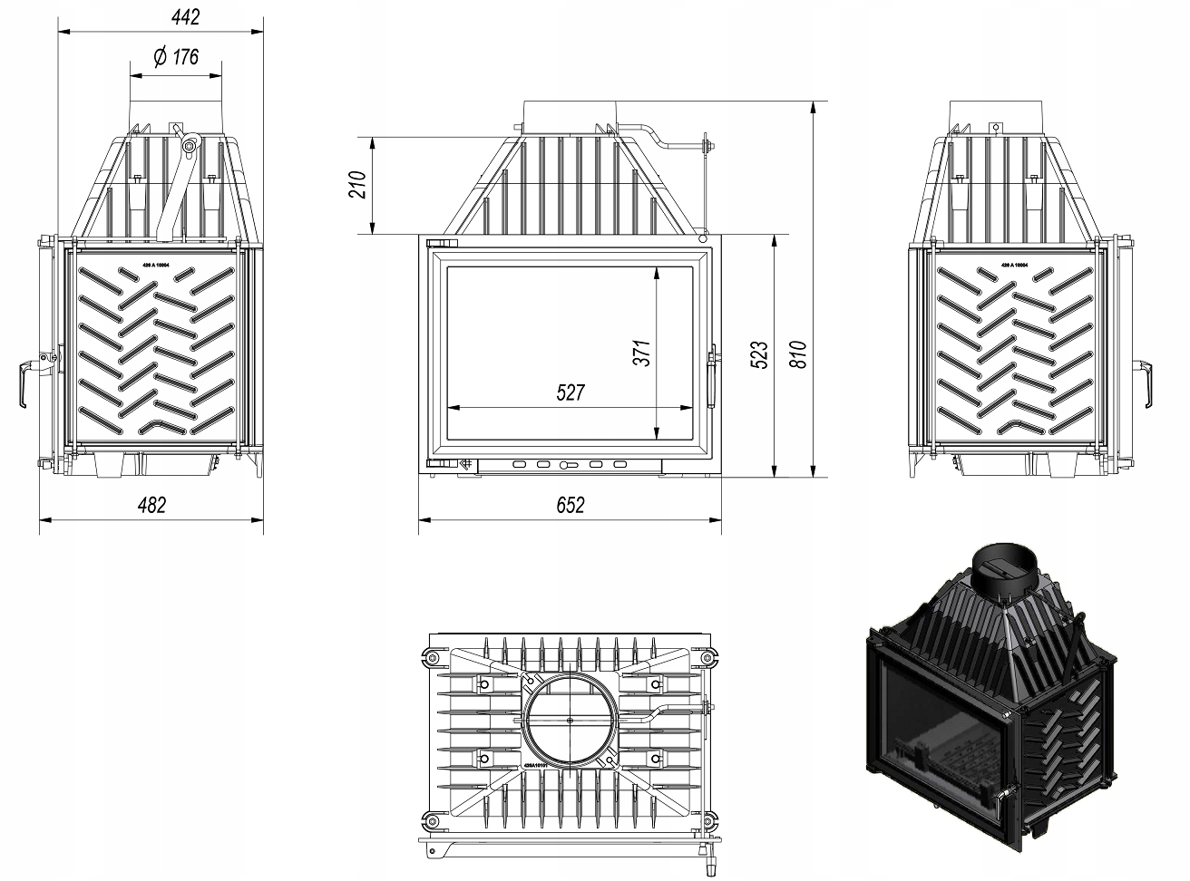 Kominek Wkład Kominkowy żeliwny ZUZIA 15 kW fi 200 Żeliwny na Drewno