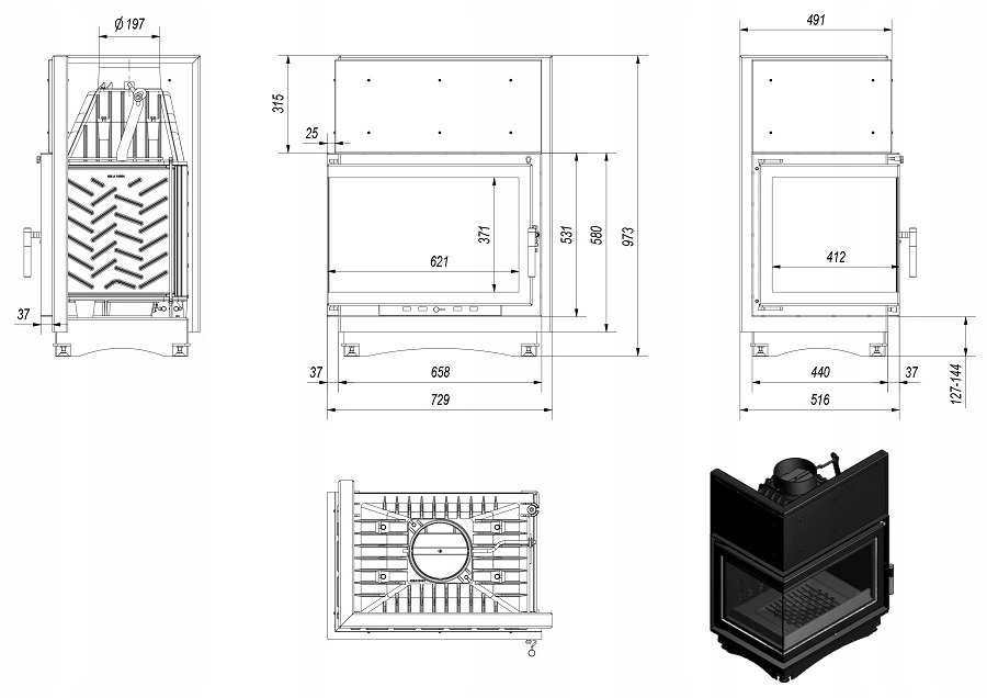 KOMINEK WKŁAD KOMINKOWY ZUZIA 15 kW LEWY BS KRATKI
