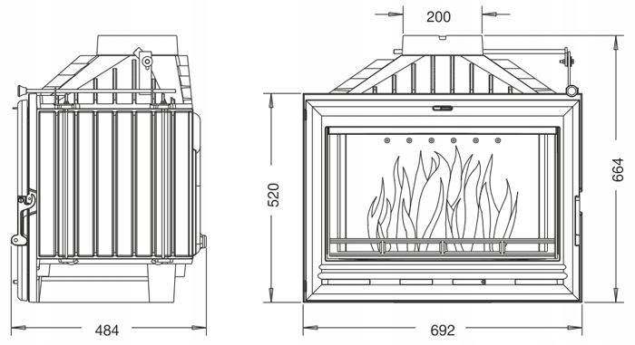 Kominek Wkład powietrzny żeliwny UNIFLAM 700 OPTION ECO z szybrem
