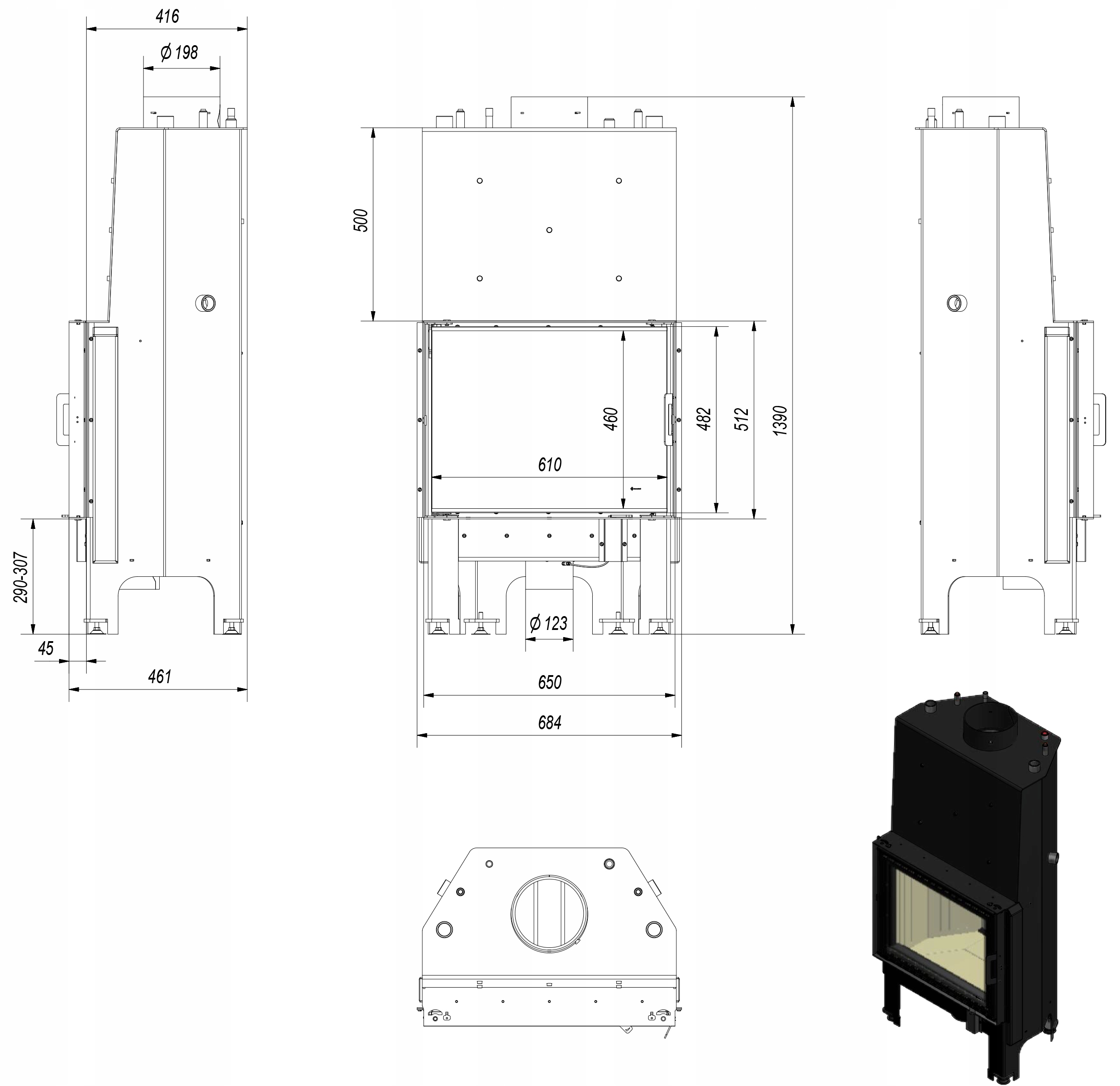 Kominek z płaszczem wodnym NADIA 12 kW Ø 200