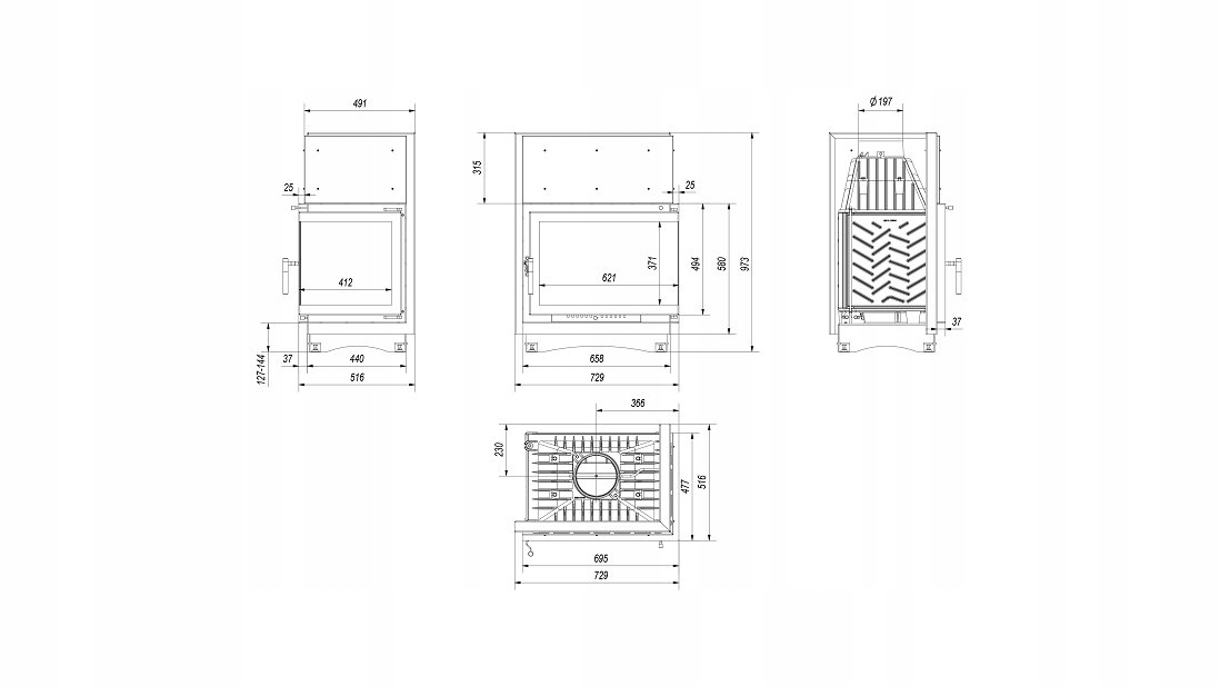 Kominek żeliwny OLIWIA narożny prawy BS 18 kW fi 200