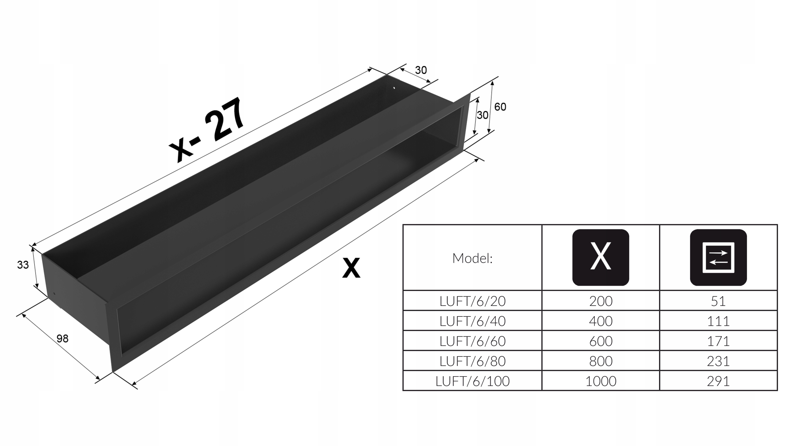 Kratka kominkowa LUFT prosty czarny 6×60 Z ŁĄCZENIAMI – KOMPET 3szt
