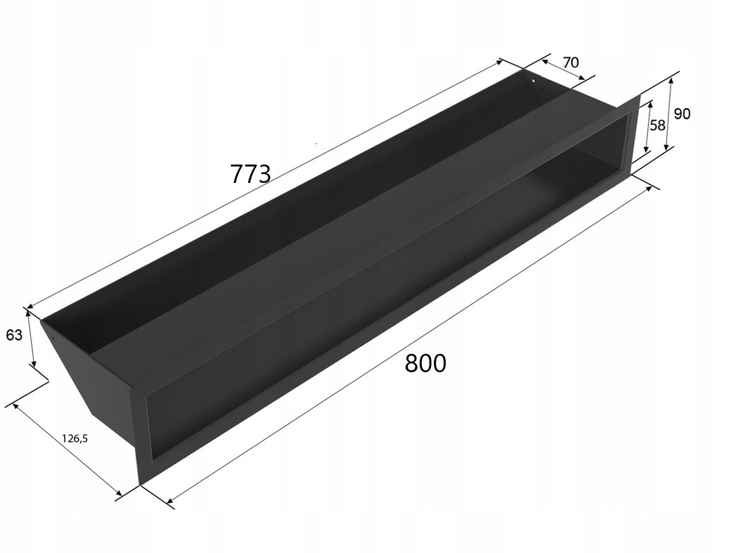 Kratka kominkowa LUFT prosty grafitowy 3szt 9×80