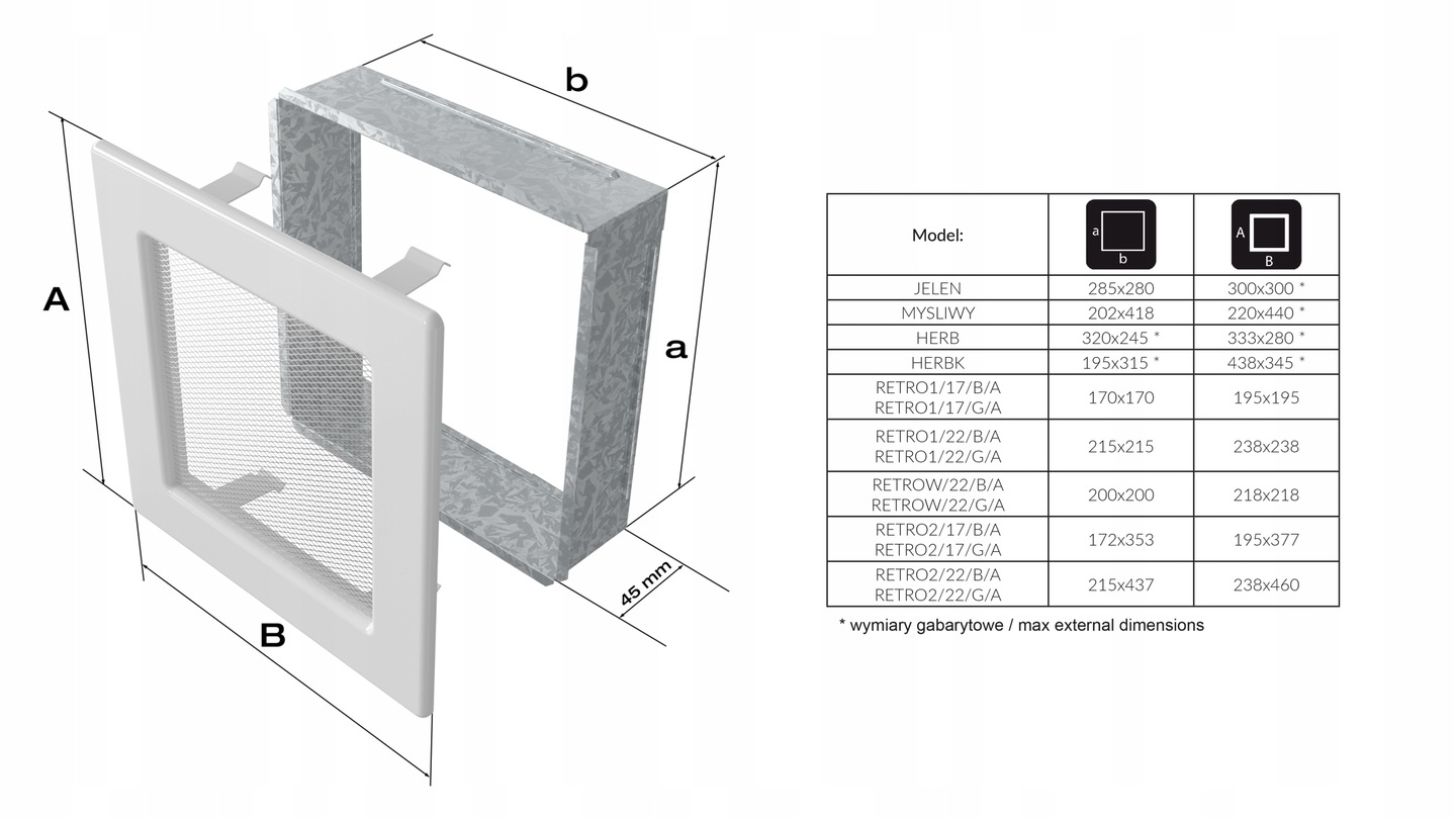 KRATKA KOMINKOWA Retro grafit antyk otwierana 22