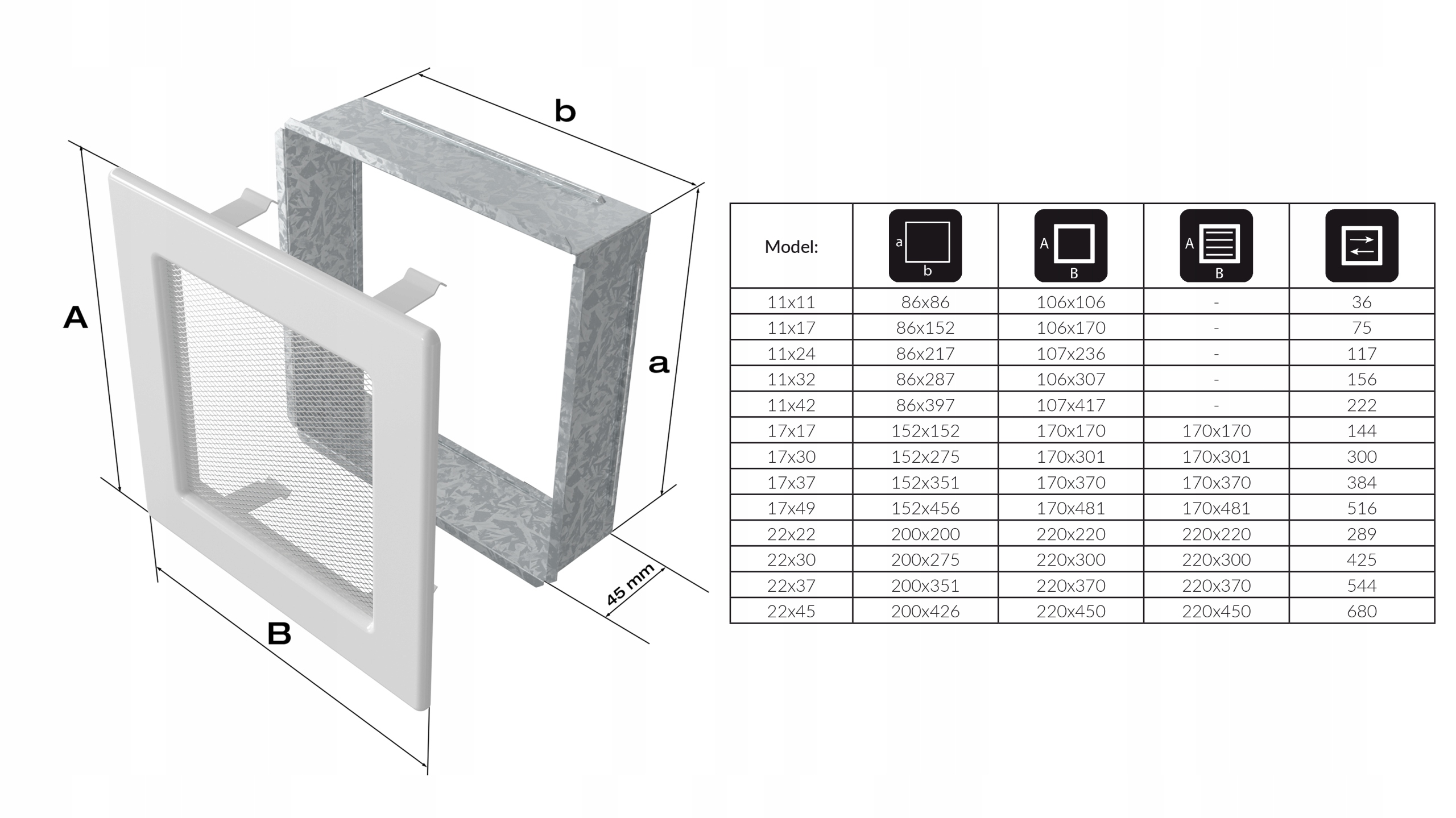 KRATKA KOMINKOWA WENTYLACYJNA FRESH 17×49 CZARNA