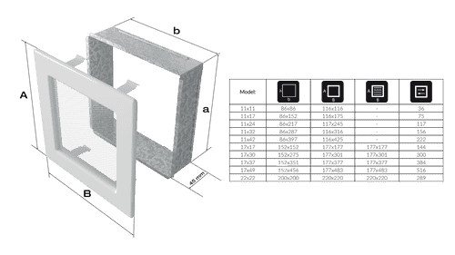 Jest ona instalowana w ścianie lub w czopuchu obudowy kominkowej za pomocą kieszeni oraz giętkich zapinek.