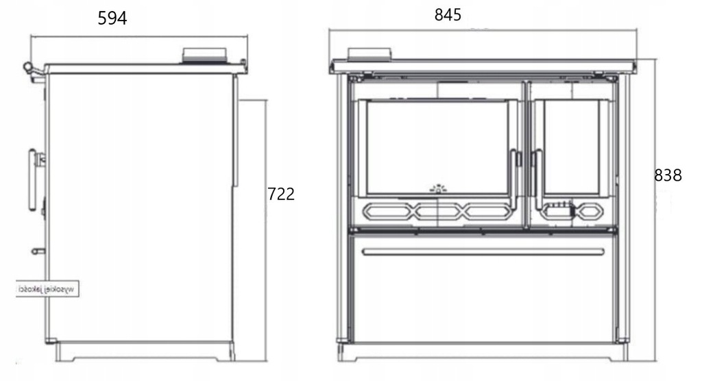 Kuchnia na drewno z piekarnikiem GLASS 850 stalowo-żeliwna BIAŁA LEWA