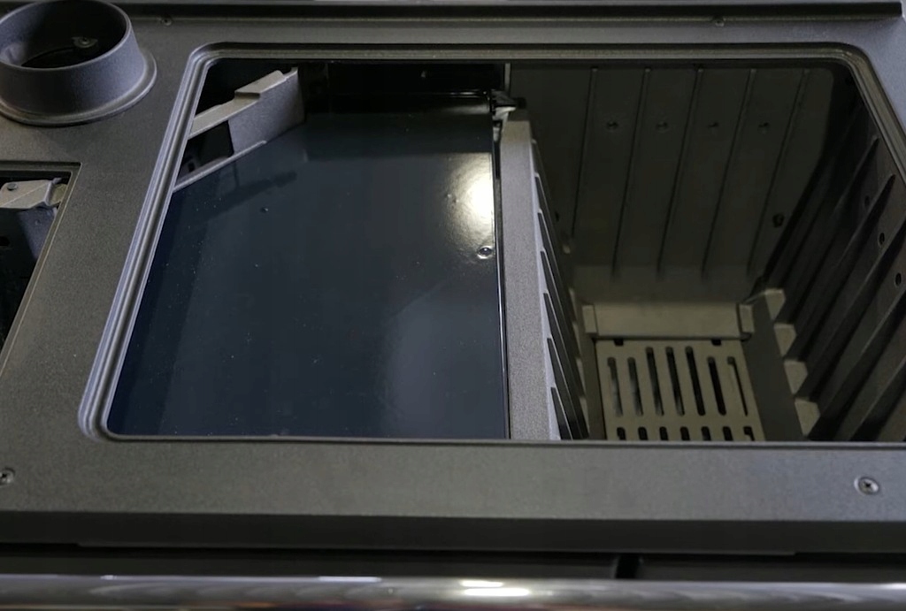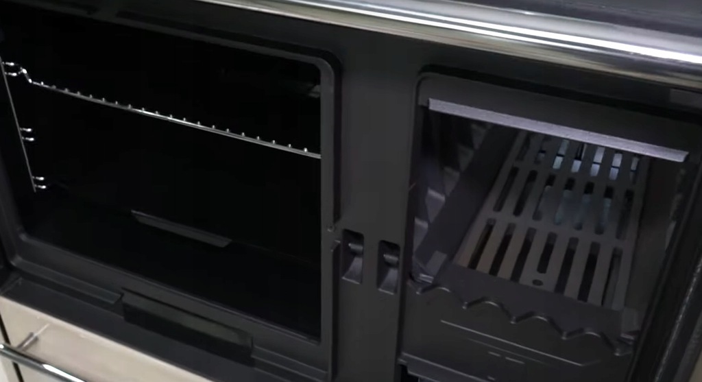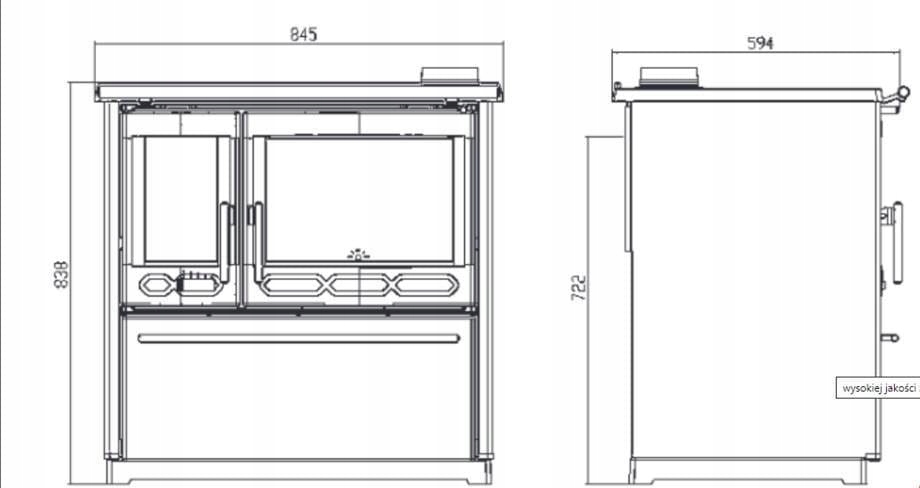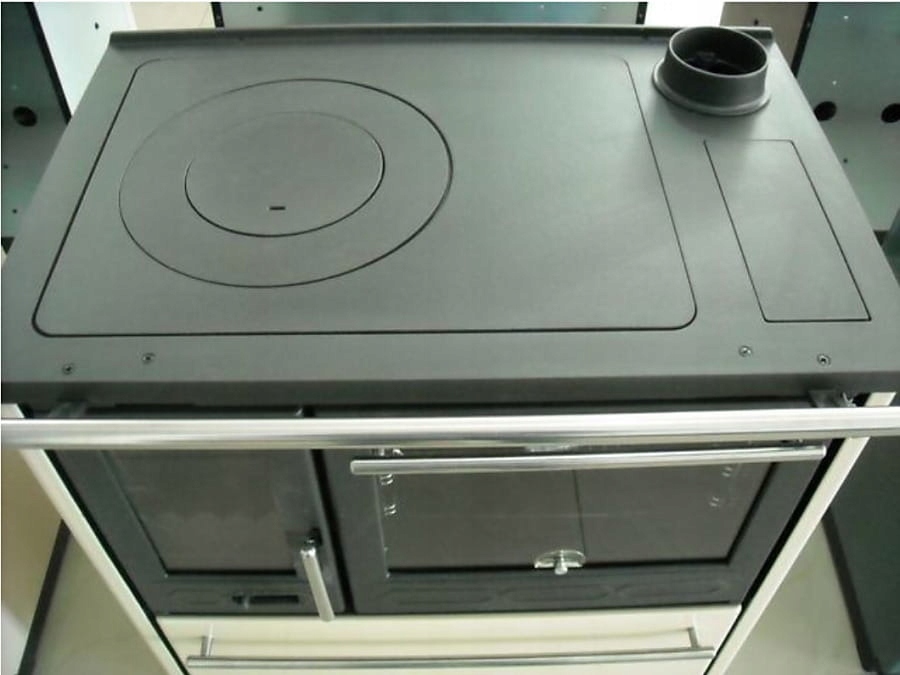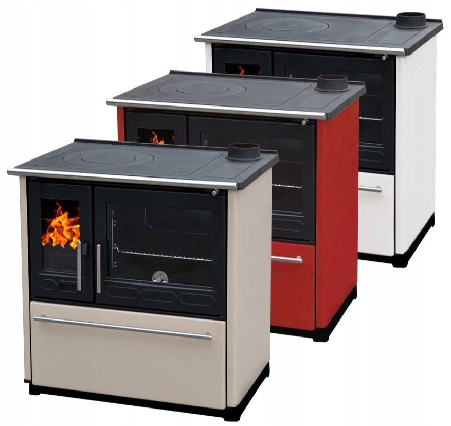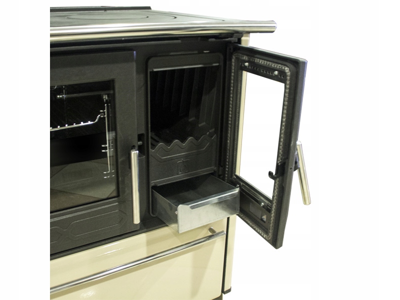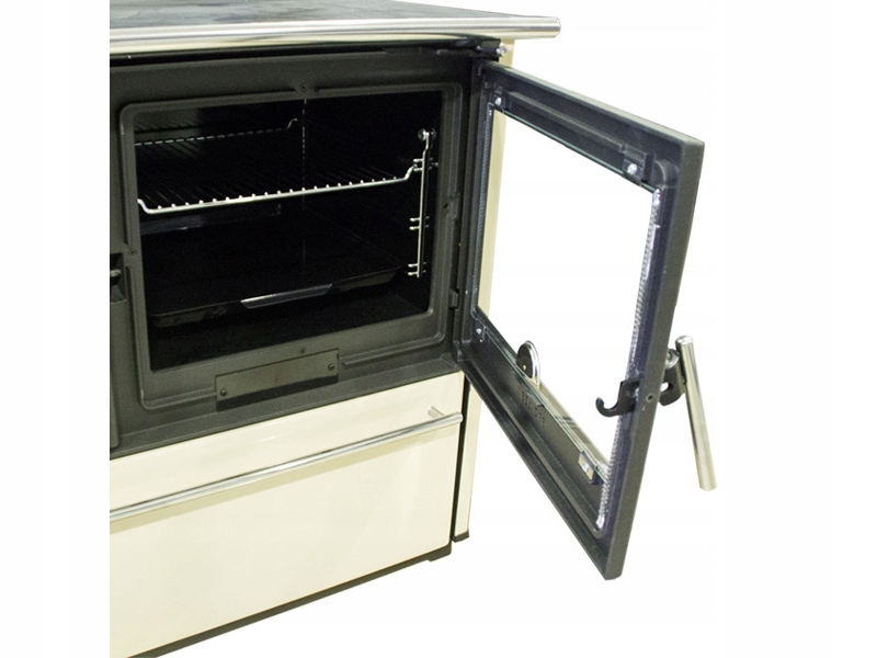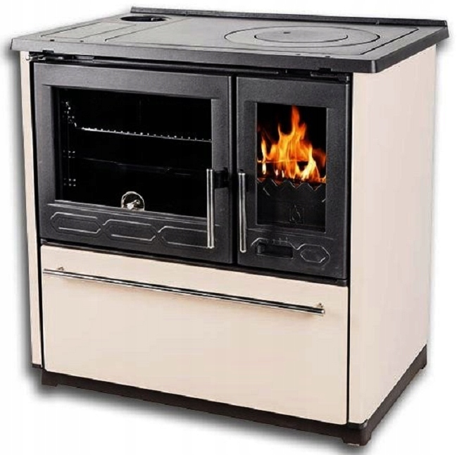 Kuchnia piec na drewno Plamen GLASS 850 kremowa – lewy wylot spalin