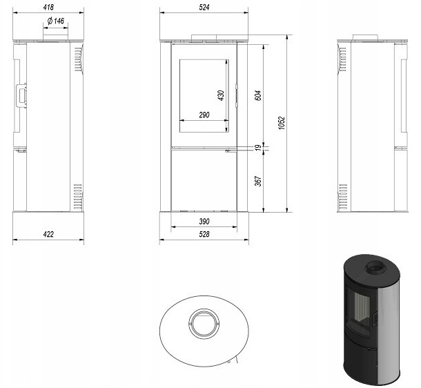 Piec stalowy kaflowy koza KRATKI AB S/DR Ø 150 8 kW biały kafel