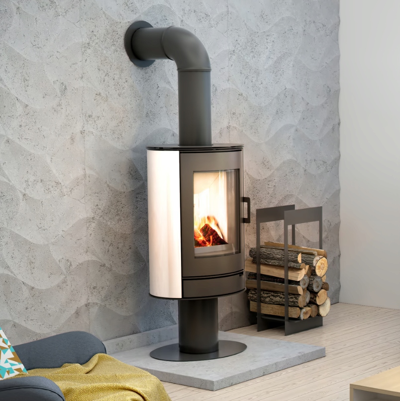 Piec stalowy kaflowy koza obrotowy AB S/N/O/DR/GLASS Ø 150 8 kW biały