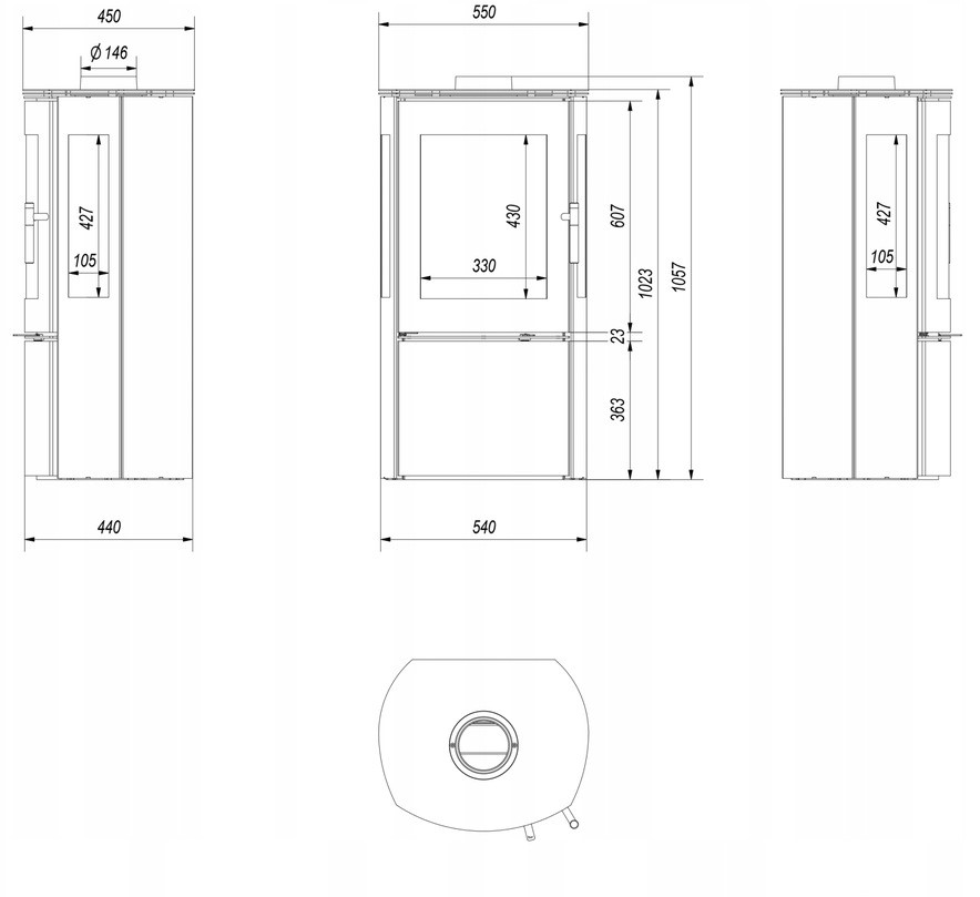 Piec stalowy koza KRATKI FALCON VIEW Ø 150 10 kW