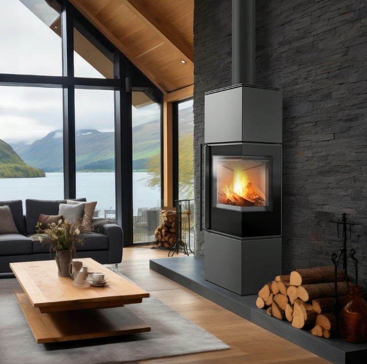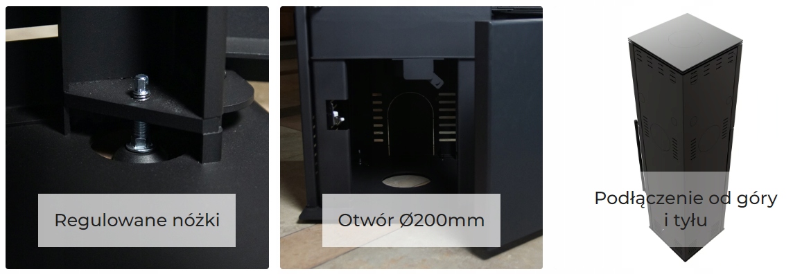 Piec stalowy REN/M prawy Ø 150 7 kW SZYBA BOCZNA