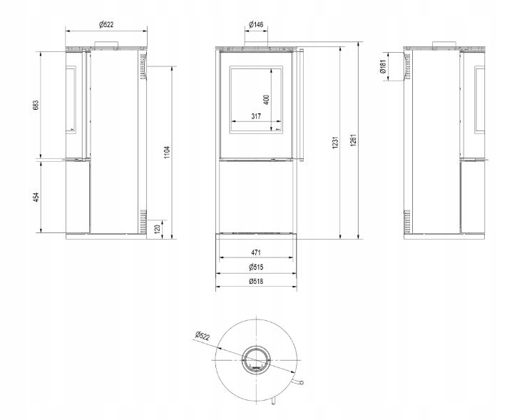 Piec stalowy SVEN fi 150 7 kW czarne wyłożenie