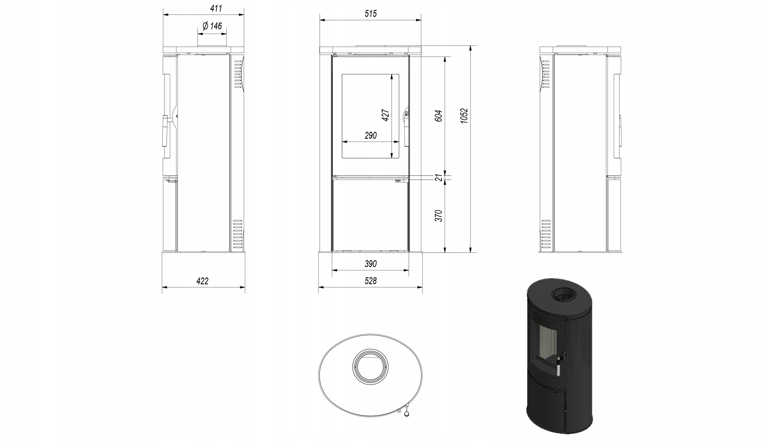 Piec Wolnost. stalowo-żeliwny KOZA AB Ø 150 8 kW