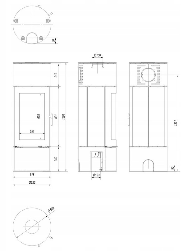 Piec wolnostojący ANTARES 10 kW fi 150 stalowy ECO do rekuperacji