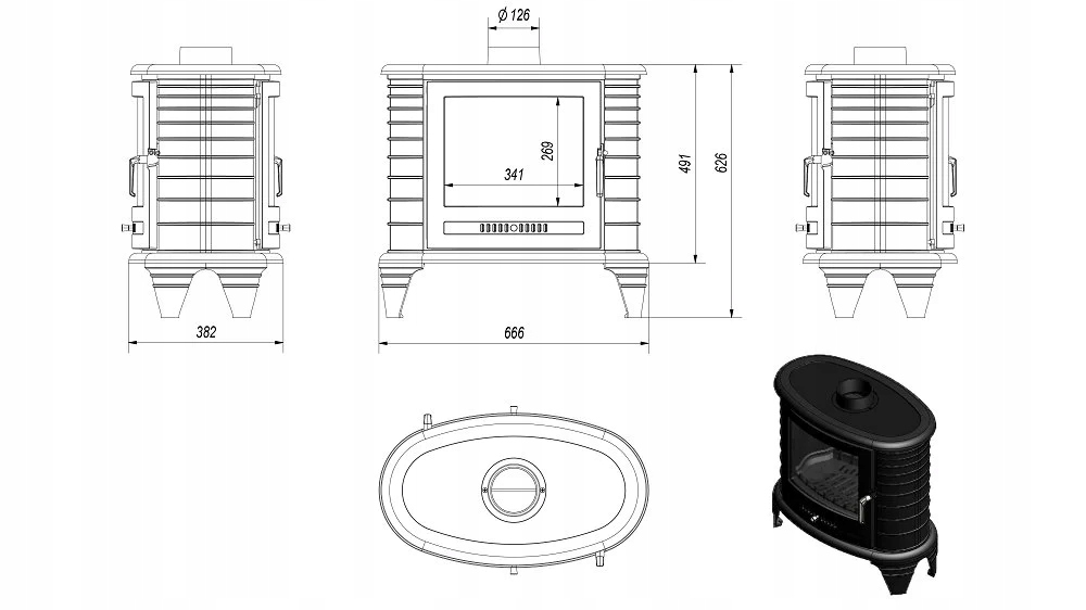 Piec wolnostojący dwustronny KOZA K8 fi130 tunel