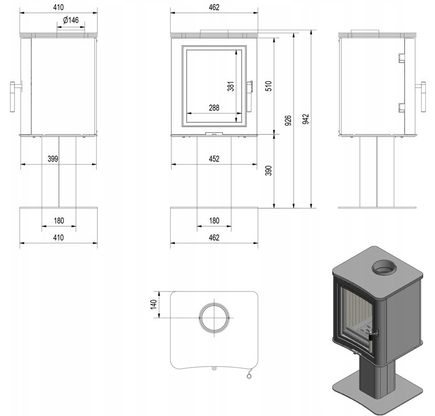 PIEC WOLNOSTOJĄCY KOZA K5 NA NODZE Ø 150 7 KW NOGA
