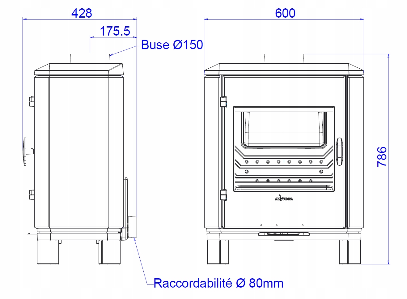 Piec wolnostojący żeliwny INVICTA CAROLO ZEN 8 kW doprowadzenie powietrza
