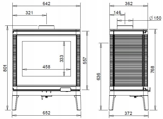 Piec żeliwny INVICTA KAZAN GA fi 150 9kW czarne zdobienie szyby antracyt