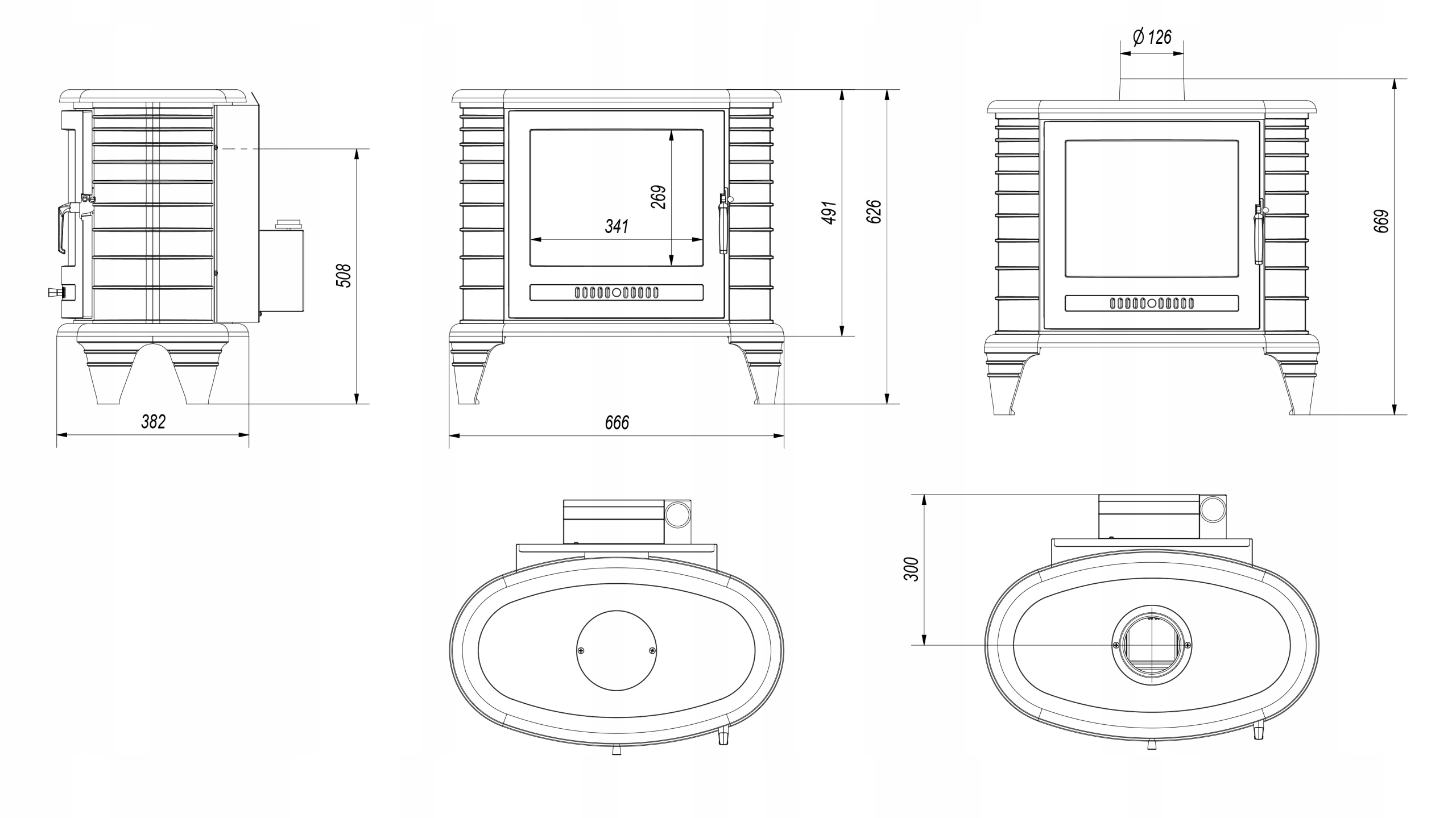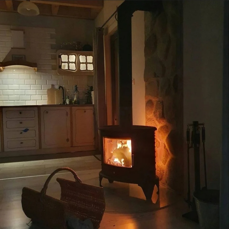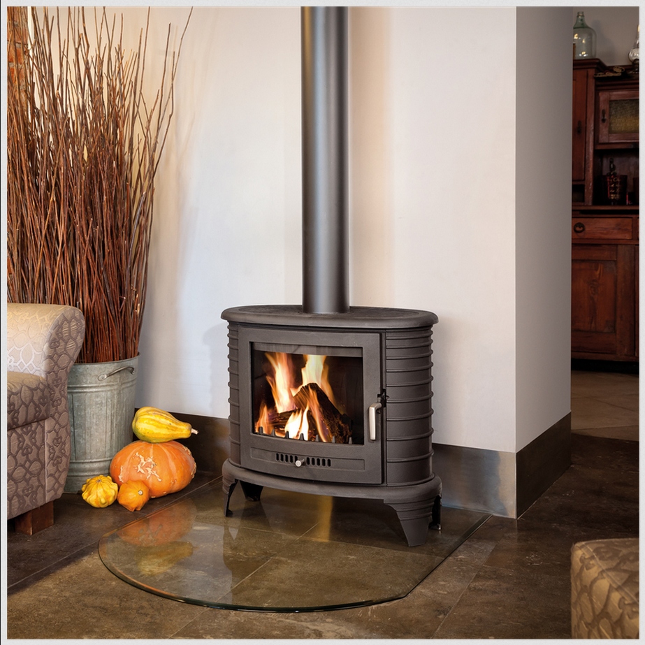 Piec żeliwny KOZA K8 z Turbofanem KRATKI + zestaw do komina fi 200