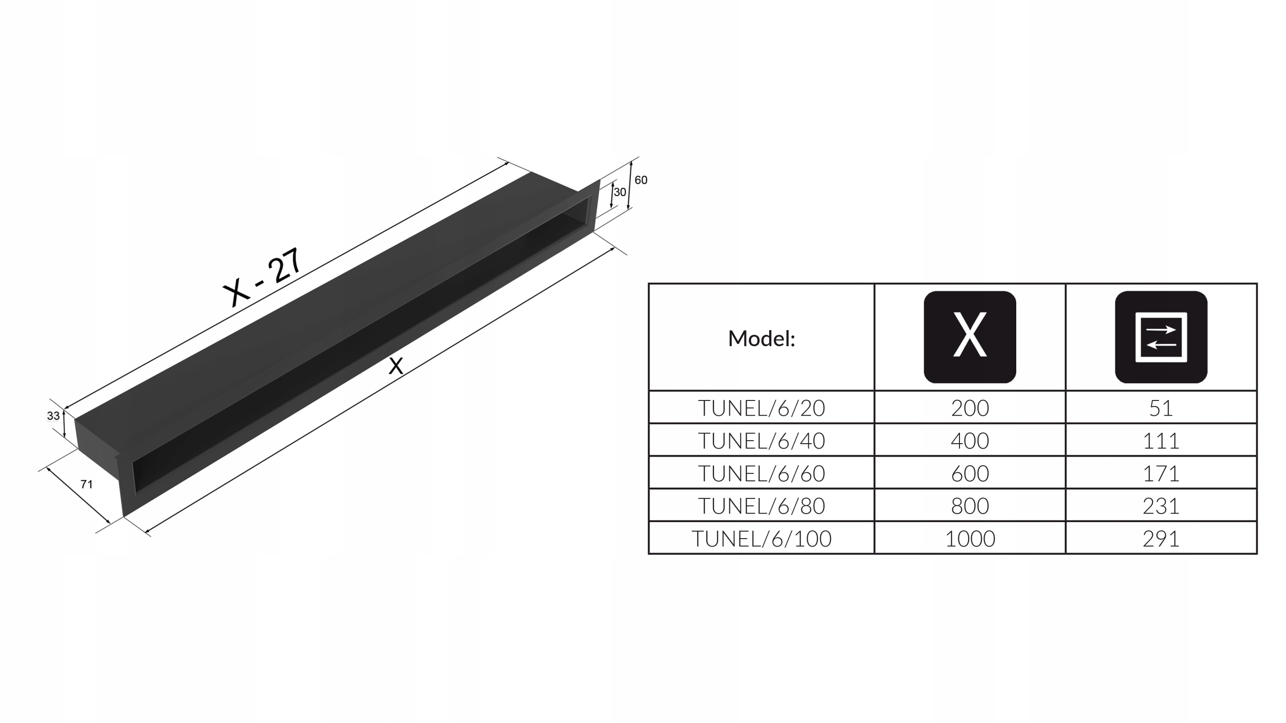 TUNEL szlifowany 6×40 KRATKA KOMINKOWA-INOX