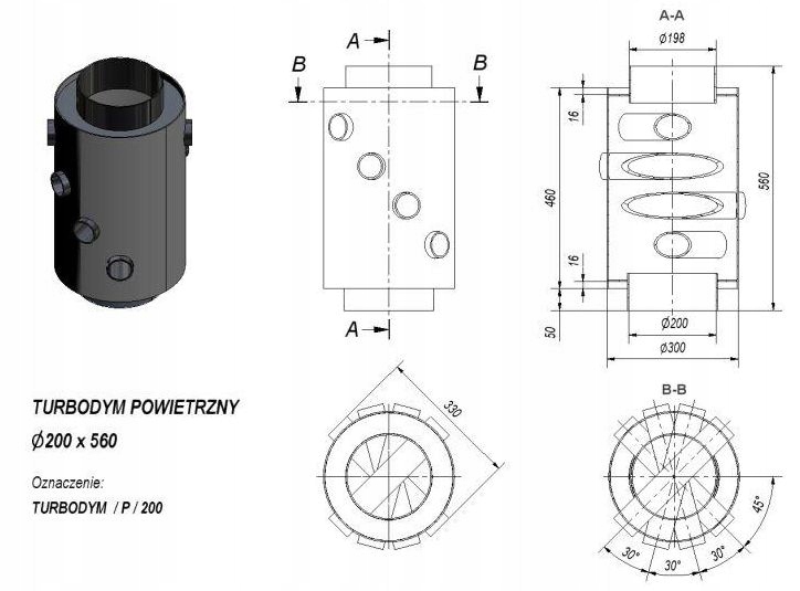 Turbodym powietrzny fi 200 – na wkład kominkowy