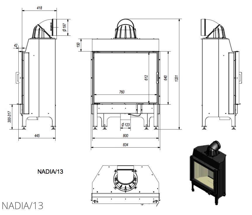 Wkład Kominek Powietrzny KRATKI PRO NADIA 13 kW fi 200 Rekuperacja Dolot