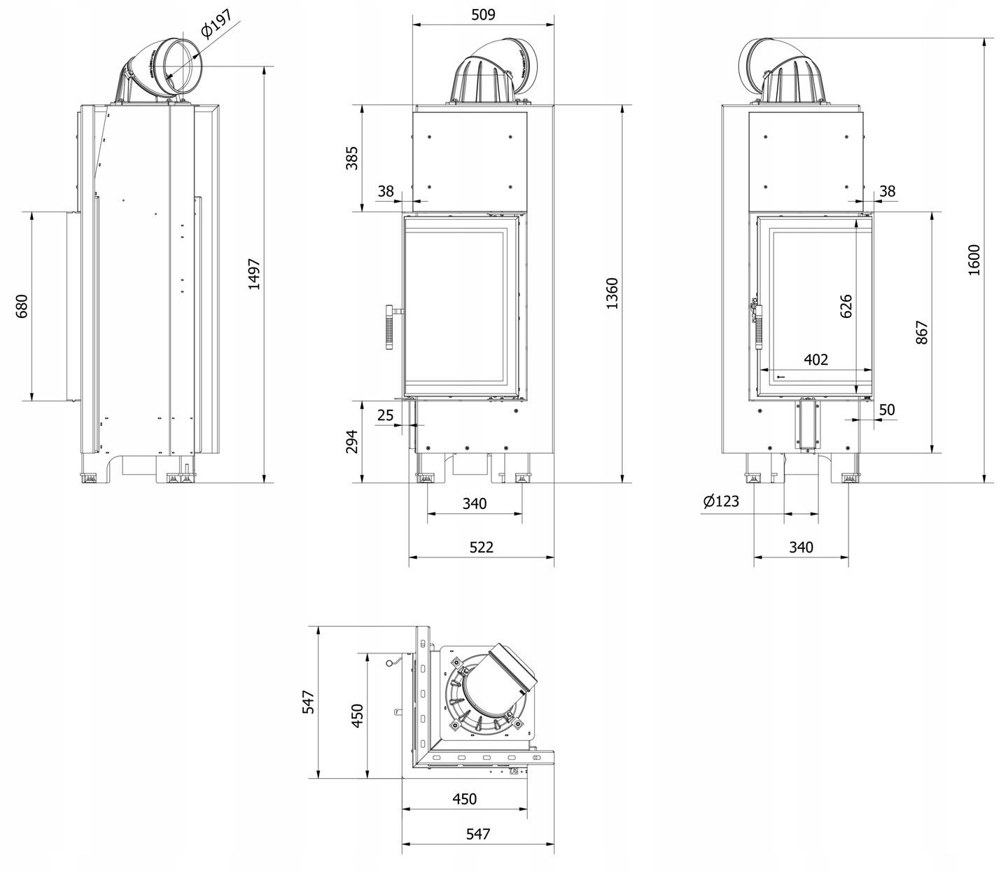 WKŁAD KOMINKOWY KOMINEK NAROŻNY MBN 10 kW PRAWY BS