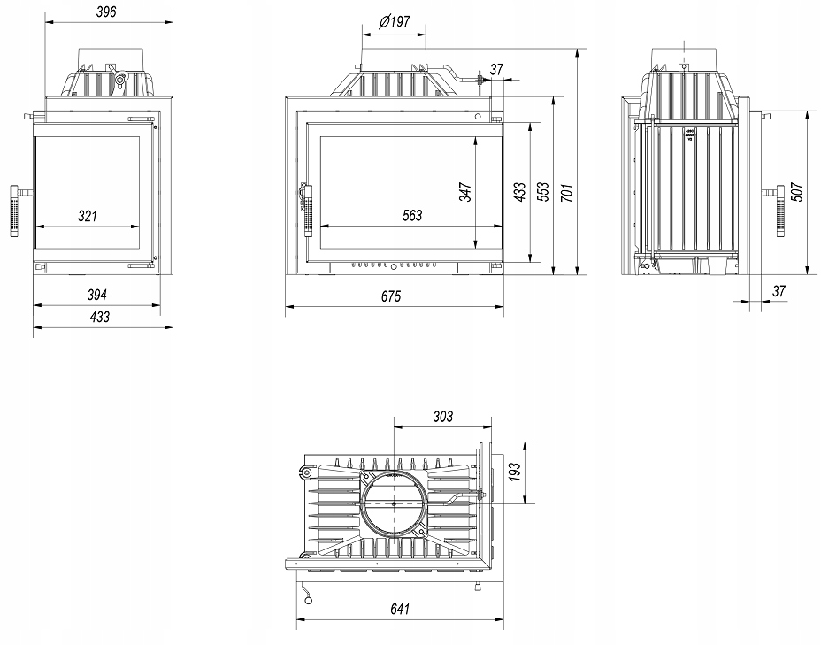 Wkład kominkowy Kominek powietrzny żeliwny SIMPLE prawy BS 8 kW fi 150