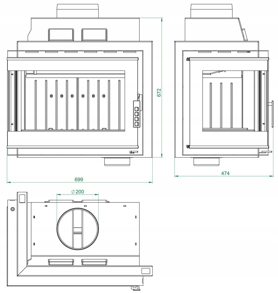Wkład kominkowy kominek UNIFLAM 600 DURO S narożny lewy, szyba łączona