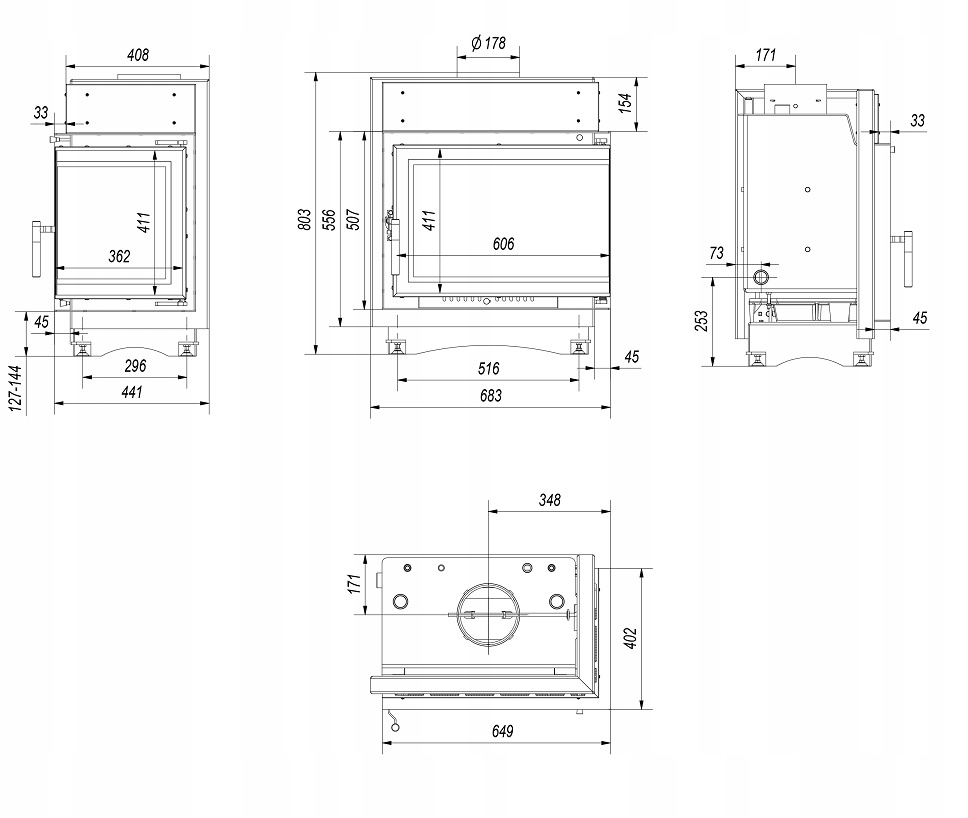 Wkład kominkowy Kominek z płaszczem wodnym MAJA DECO prawy 8 kW Ø 180