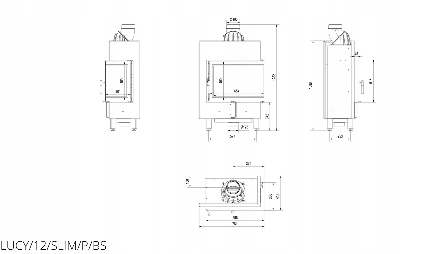 Wkład kominkowy LUCY 8 kW SLIM prawy BS Kominek powietrzny stalowy