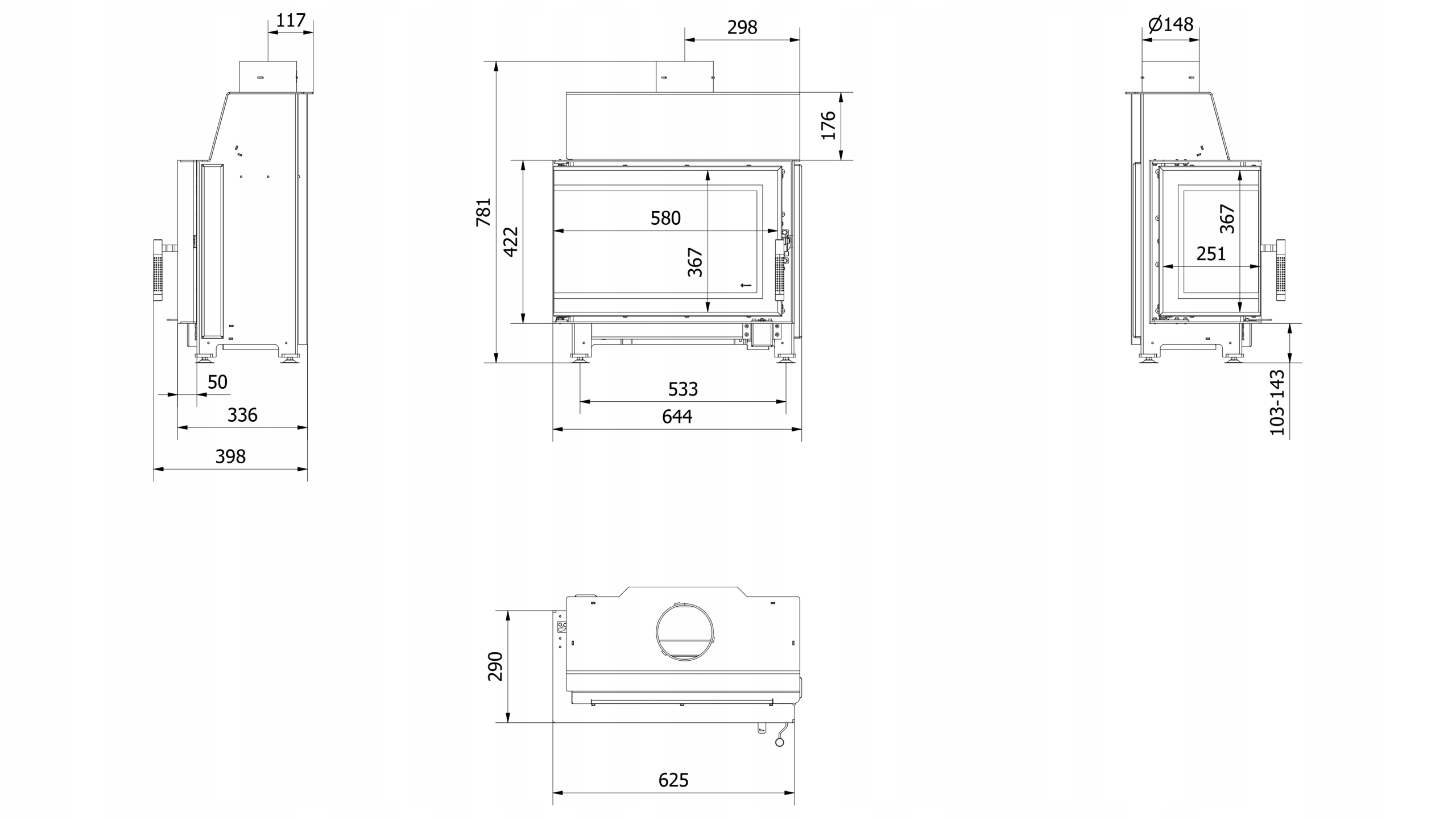 Wkład kominkowy stalowy narożny Simple S lewy 6kW