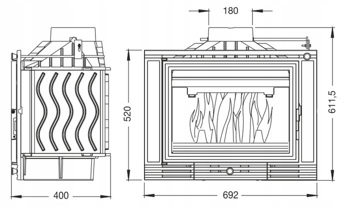 Wkład kominkowy UNIFLAM 700 ECO z szybrem KOMINEK POWIETRZNY ŻELIWNY