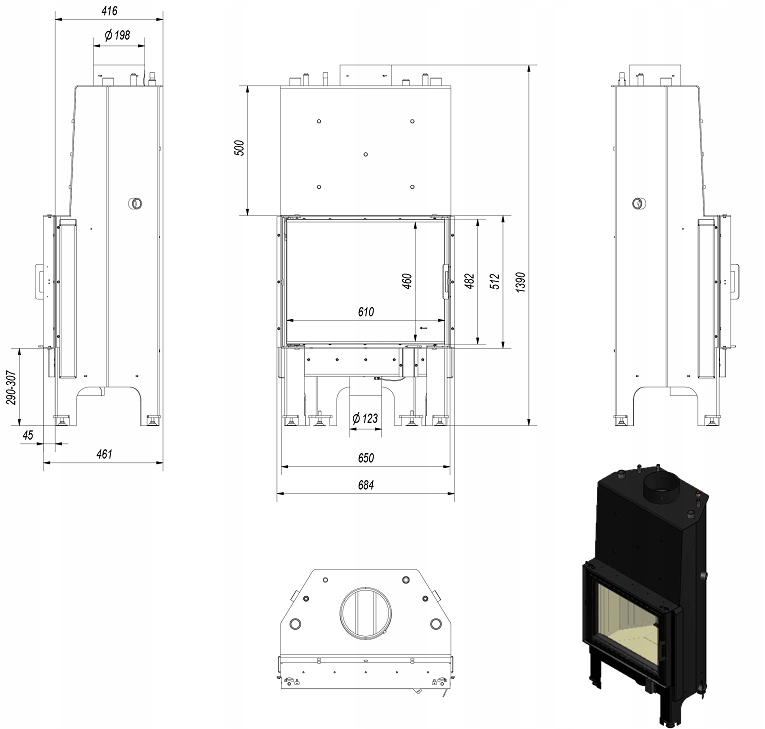 Wkład kominkowy z płaszczem wodnym NADIA 10 BLACK CZARNY TERMOTEC