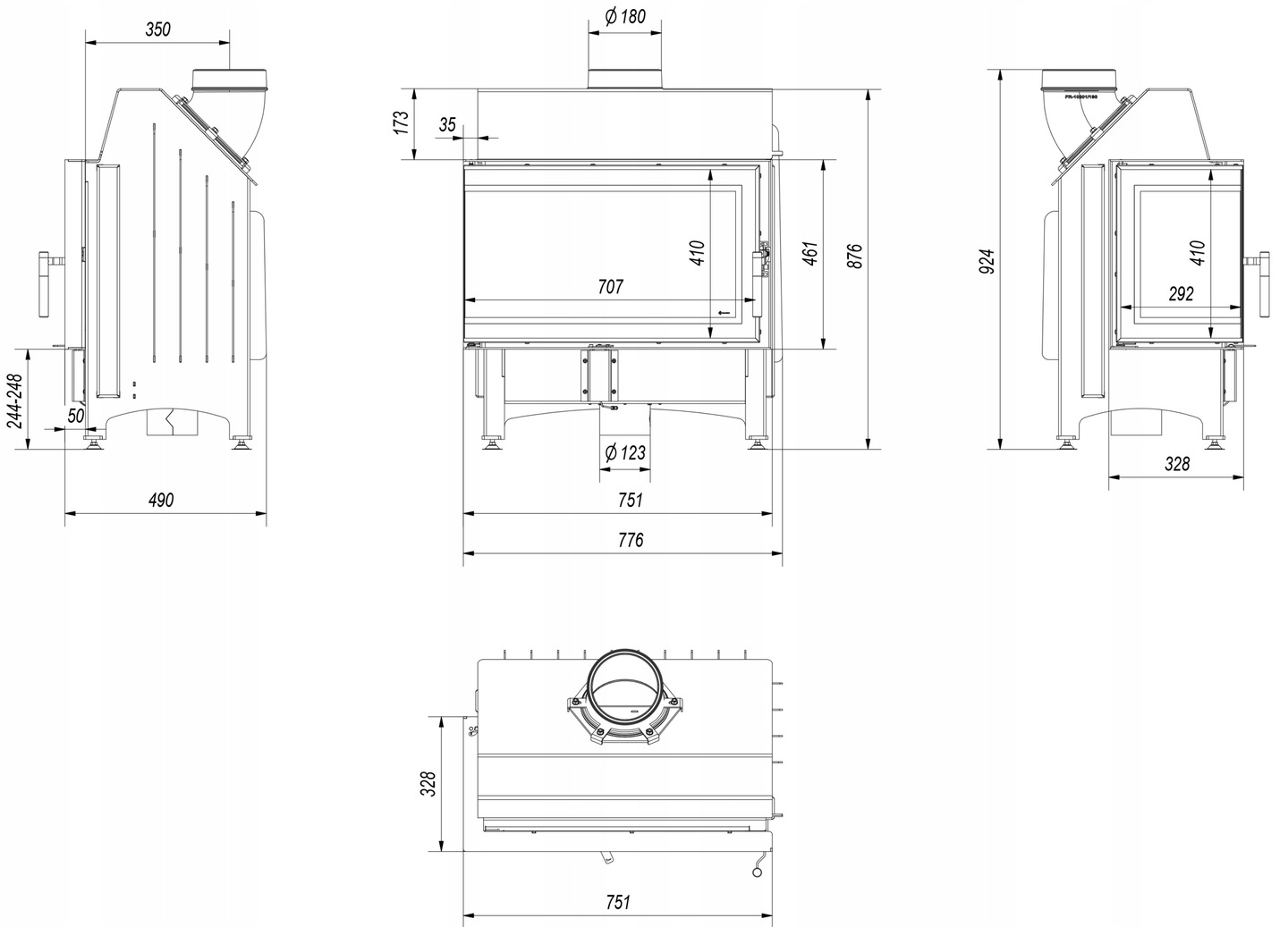 WKŁAD ZIBI DECO LEWY 11 kW BS+przył. komin CEGŁA